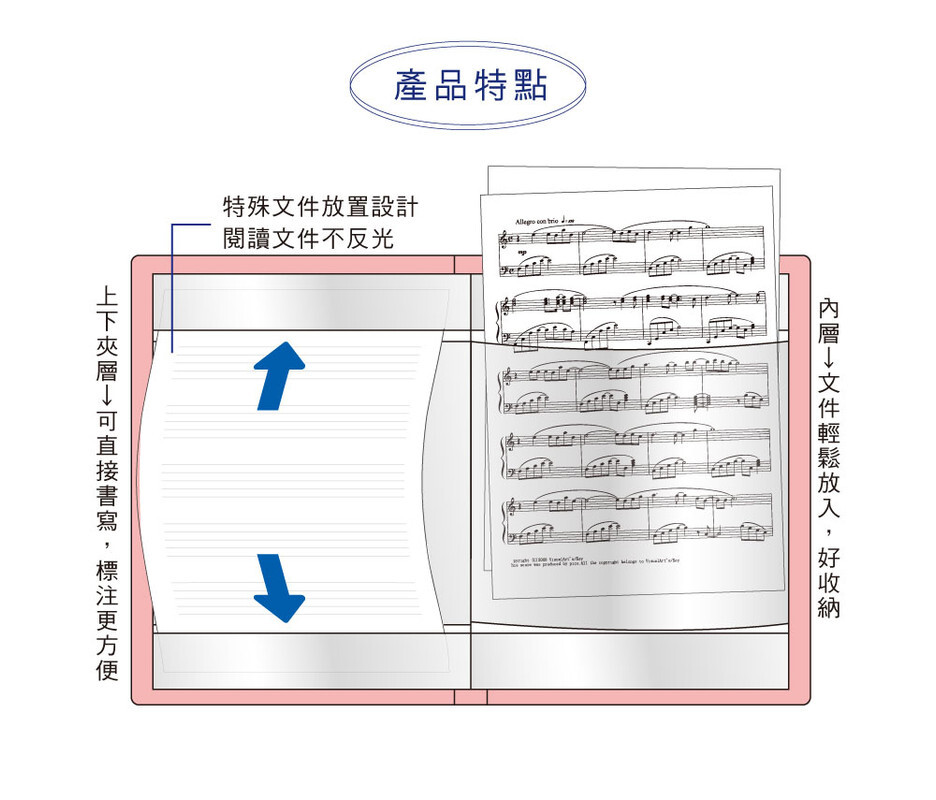 ◆特殊放置設計,閱讀文件不反光。