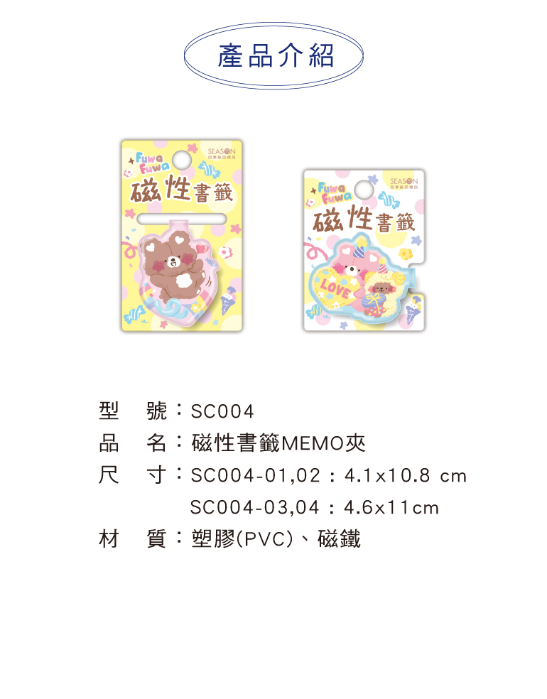 ◆四季紙品 超值磁性書籤MEMO夾 【SC004A】