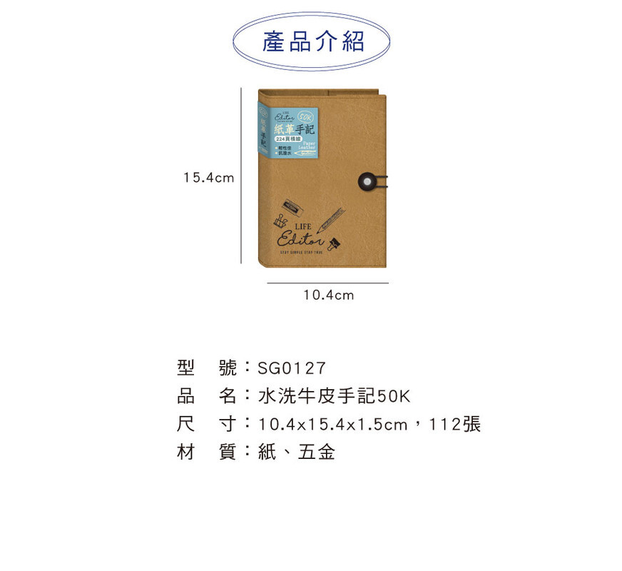 ◆四季紙品 水洗牛皮手記50K 【SG0127】