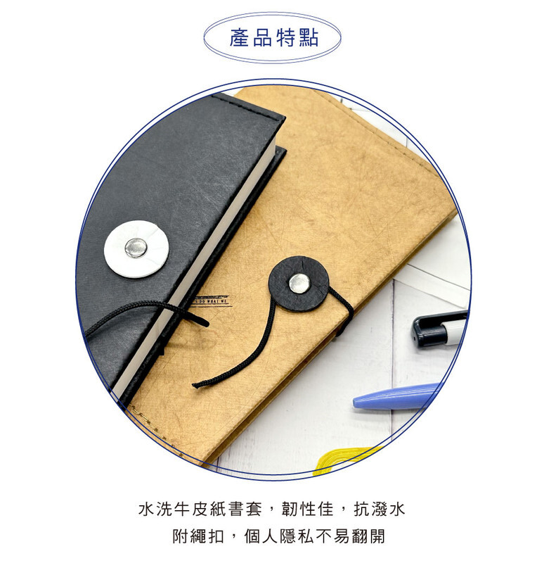 ◆水洗牛皮紙書套,韌性佳,抗潑水。