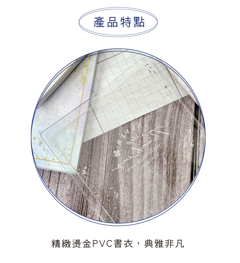 ◆精緻燙金PVC書衣,典雅非凡。