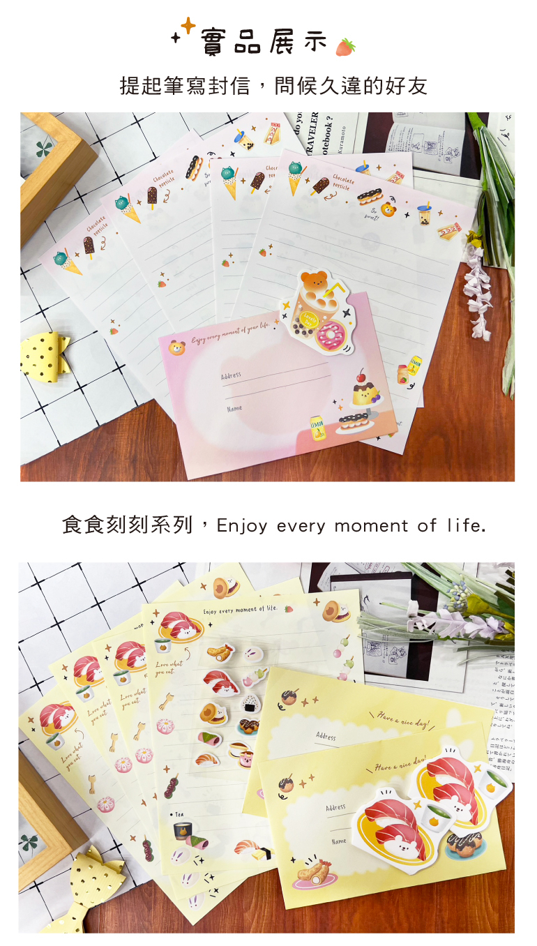◆內含信紙x12、信封x6、造型小卡x6、貼紙。