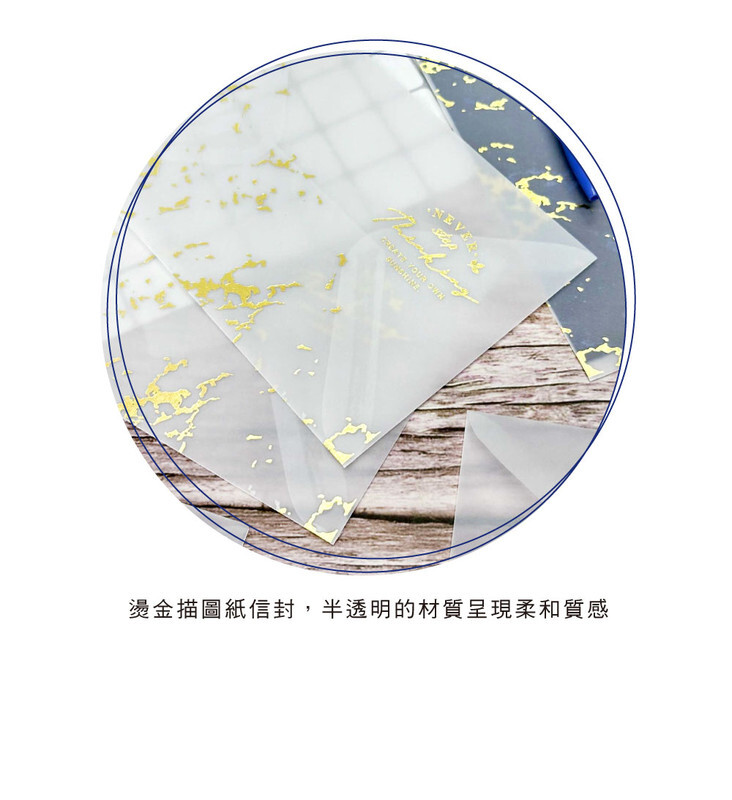 ◆燙金描圖紙信封,質感柔和,優雅美觀。