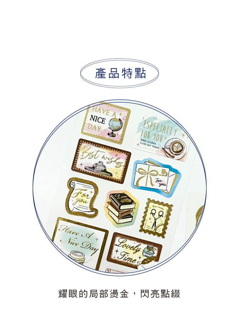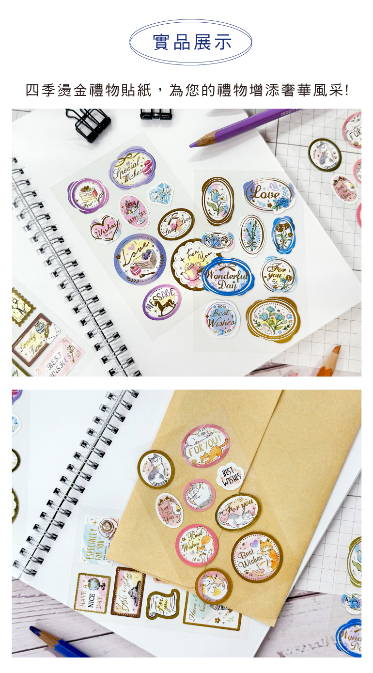 ◆精緻的燙金設計,適合卡片、禮物包裝黏貼使用。