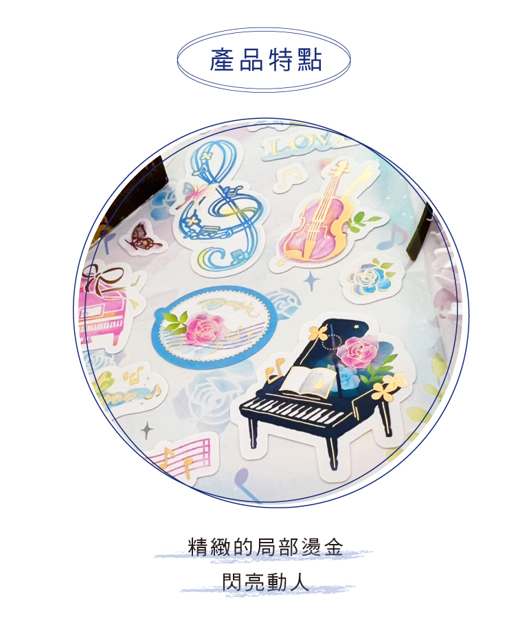 ◆精緻的局部燙金讓貼紙更加閃亮。