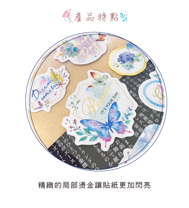 ◆精緻的局部燙金讓貼紙更加閃亮。