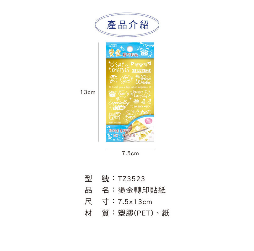 ◆四季紙品 燙金轉印貼紙 【TZ3523】