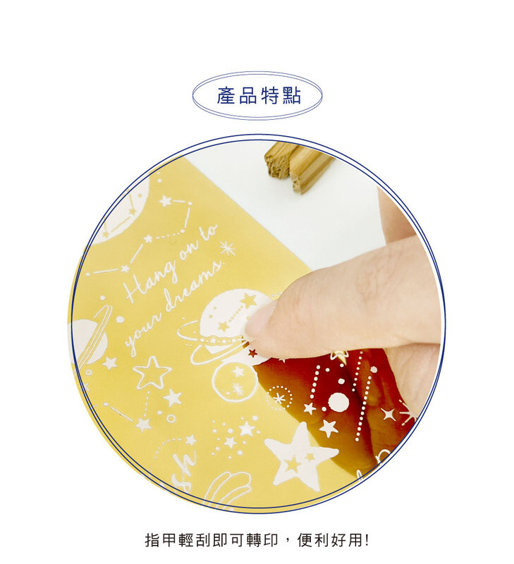 ◆指甲輕刮金箔即可轉印,可做為DIY素材混合搭配。