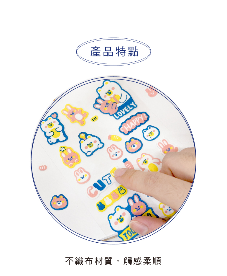 ◆不織布材質,觸感柔順。