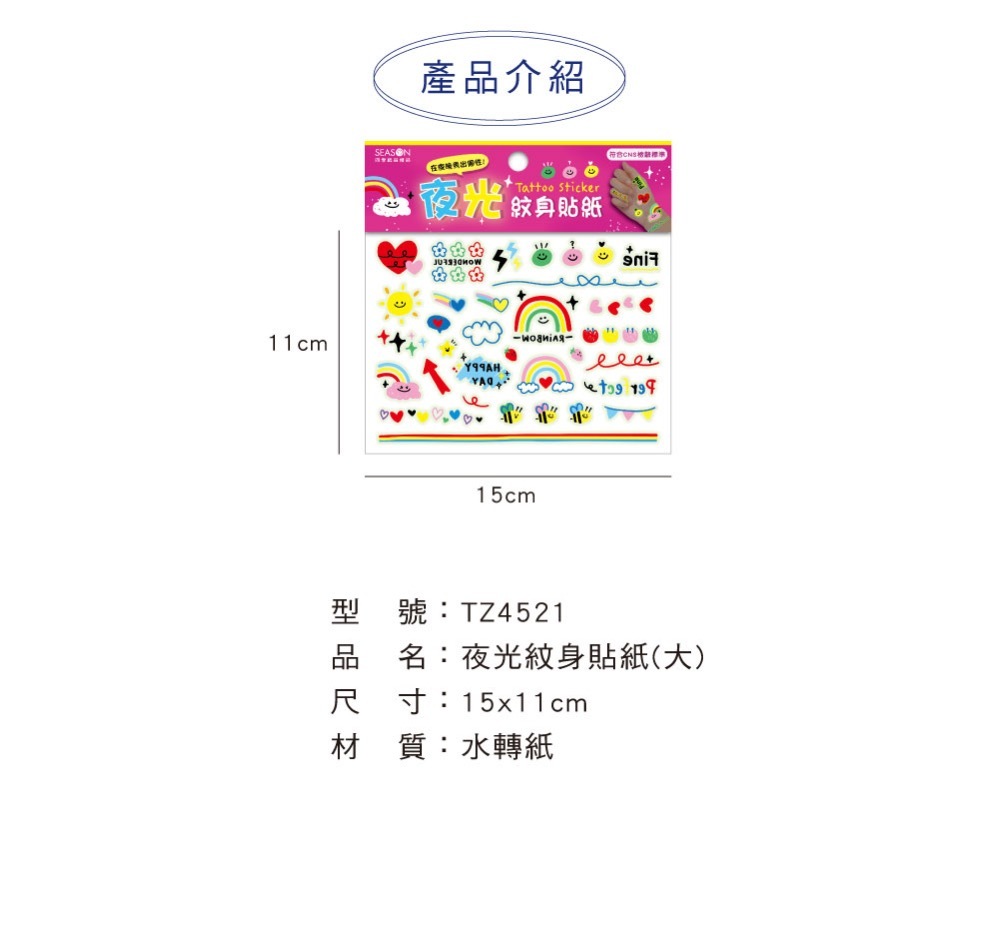 ◆四季紙品 夜光紋身貼紙(大) 【TZ4521】