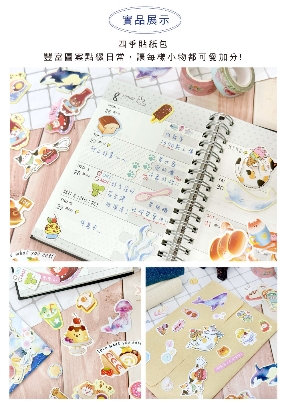 ◆貼在手帳、筆記本、文具等,可愛加分!