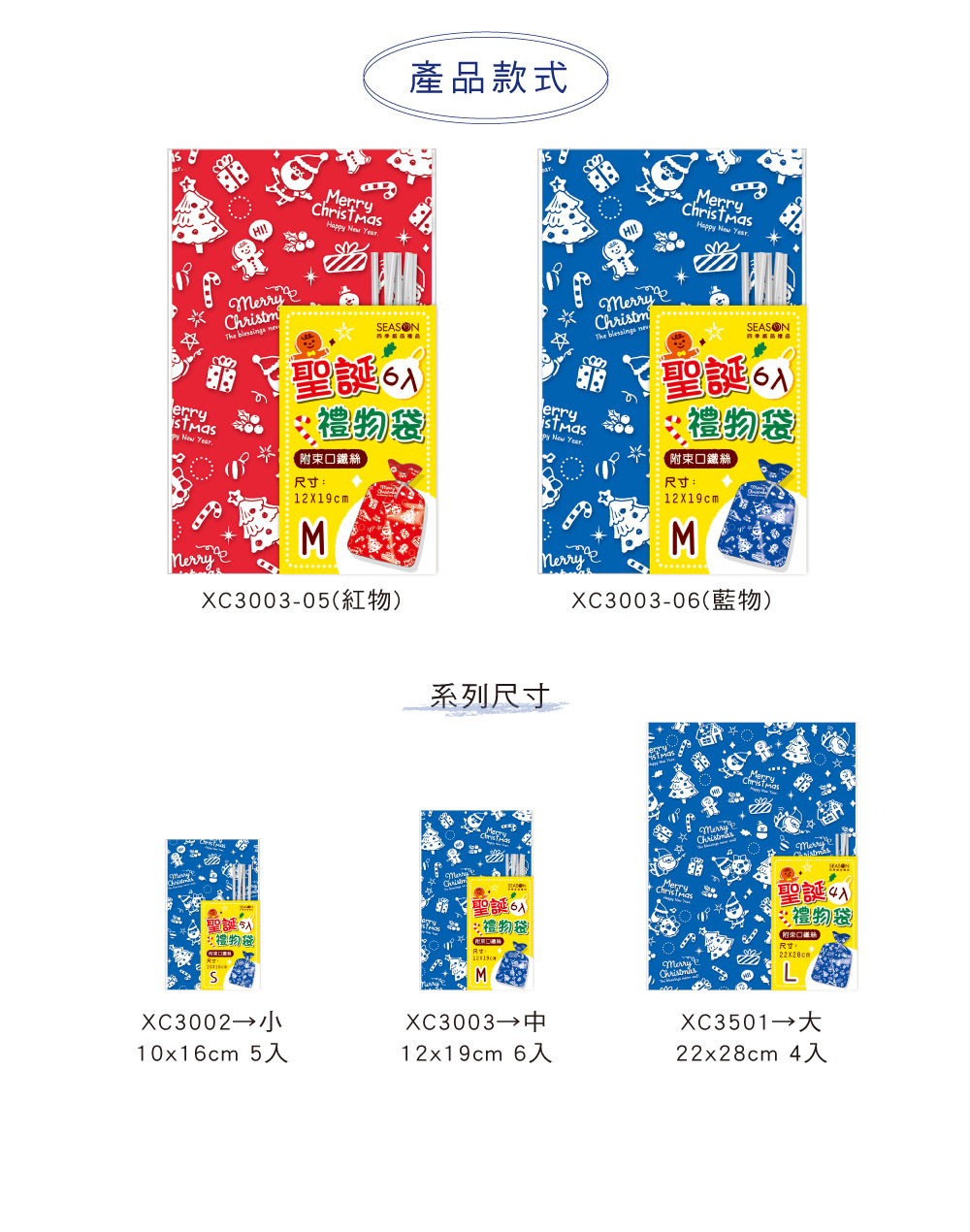 四季紙品 聖誕禮物袋(中) 6入【XC3003】