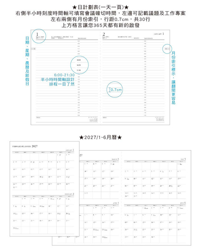 ◆可180度攤平展開,雙頁書寫無礙。