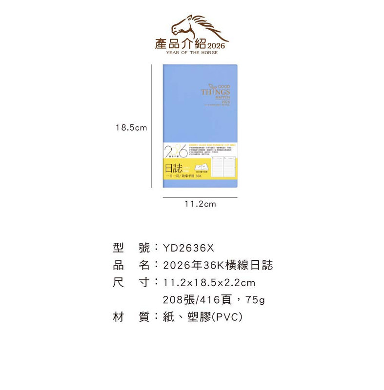 ◆四季紙品 2026年36K橫線日誌 【YD2636X】