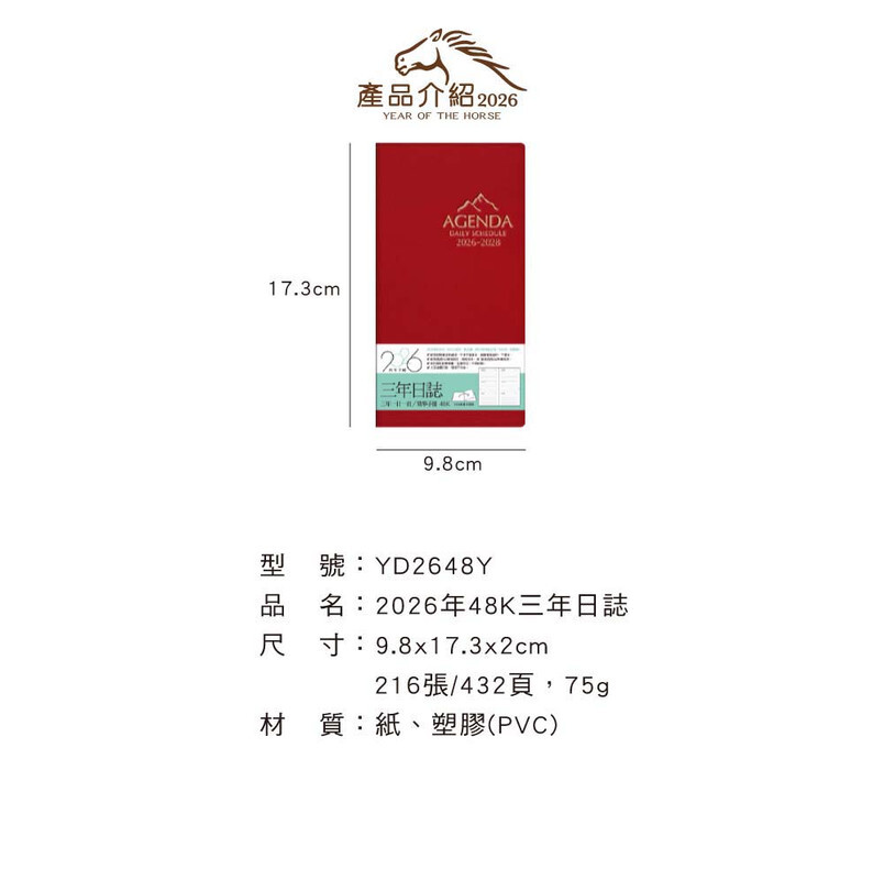◆四季紙品 2026年48K三年日誌 【YD2648Y】