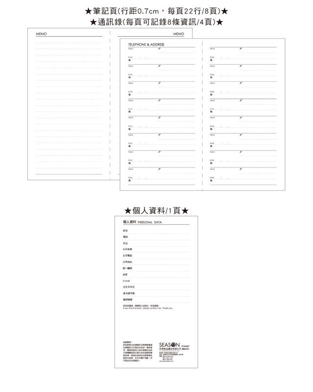 ◆規格: 9.8x17.3x2cm,216張/432頁,75g,2種款式