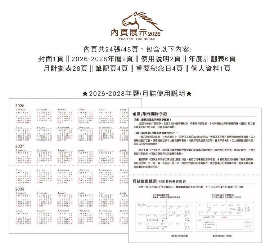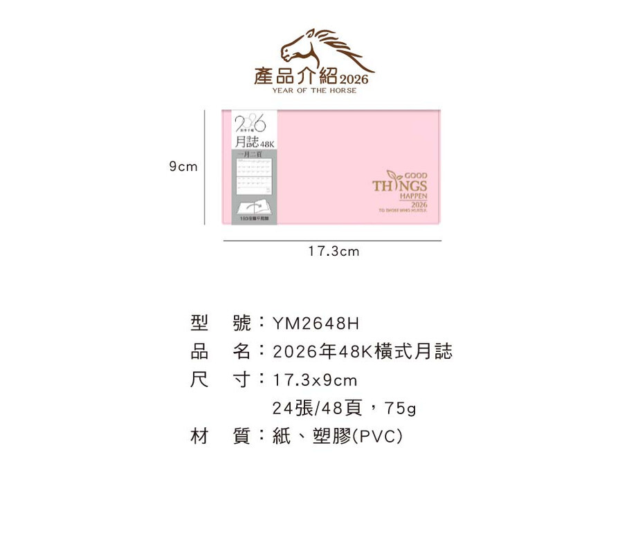 ◆四季紙品 2026年48K橫式月誌 【YM2648H】