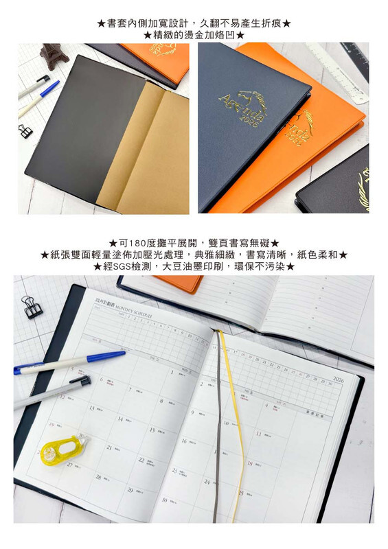 ◆可180度攤平展開,雙頁書寫無礙。