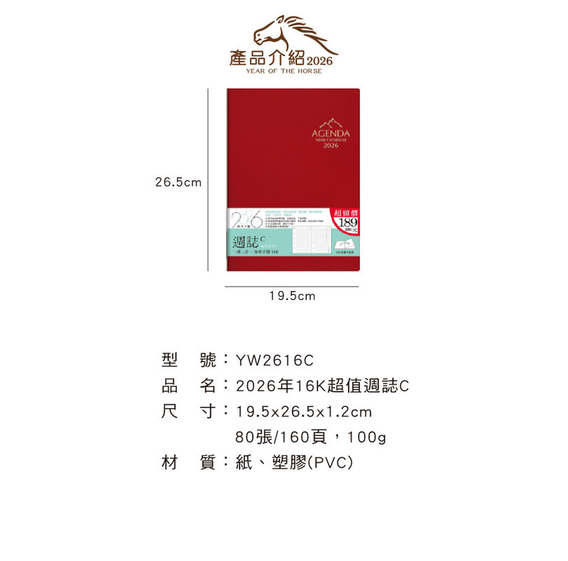 ◆四季紙品 2026年16K超值週誌C 【YW2616C】