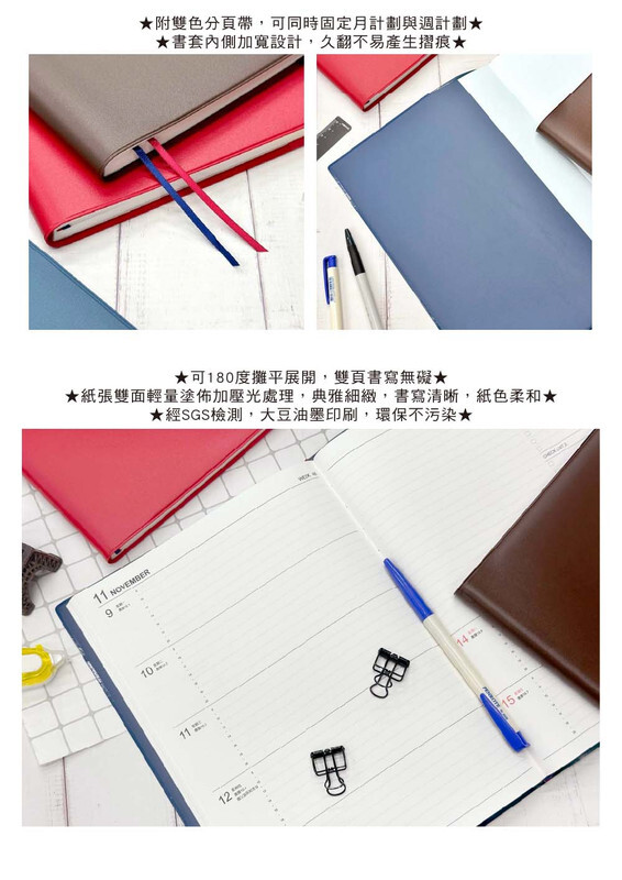 ◆可180度攤平展開,雙頁書寫無礙。