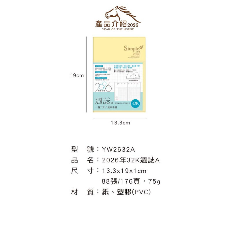 ◆四季紙品 2026年32K週誌A 【YW2632A】