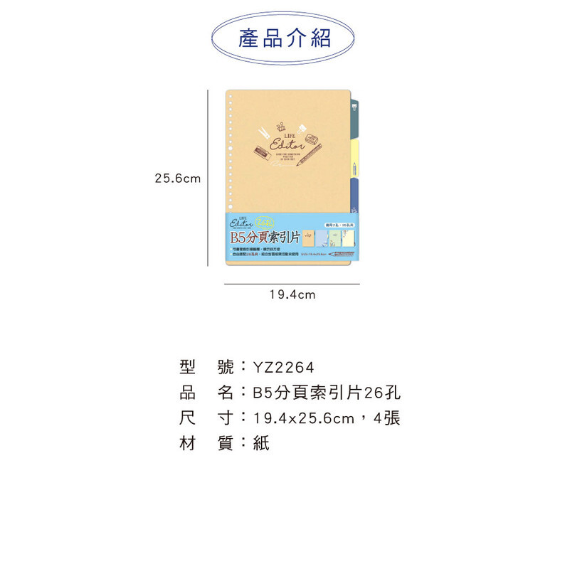 ◆四季紙品 B5分頁索引片26孔 【YZ2264】