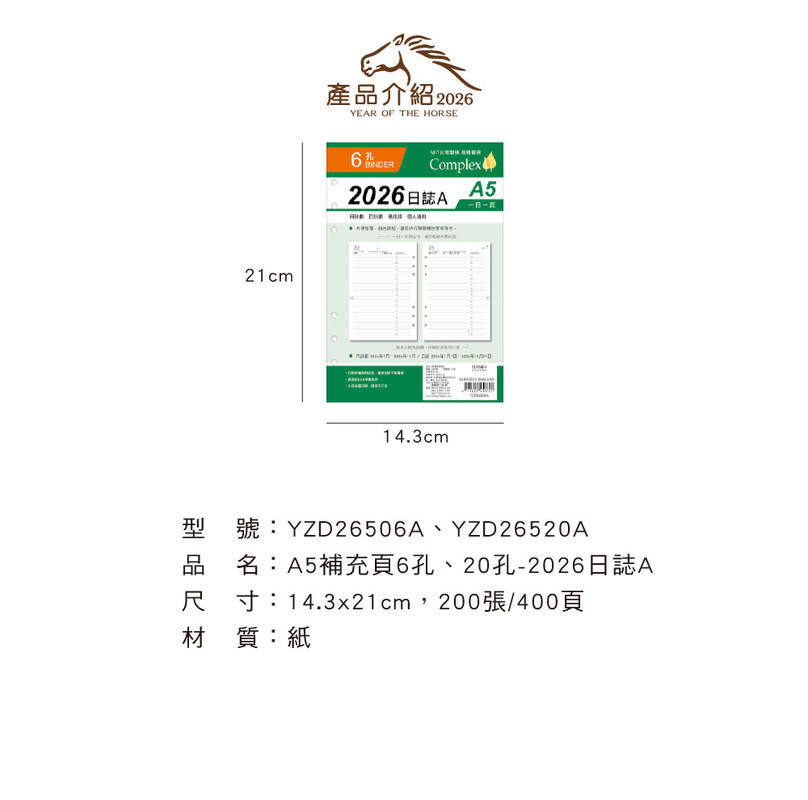 ◆四季紙品 2026日誌A A5補充頁 【YZD26506A YZD26520A】