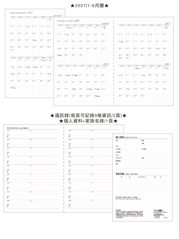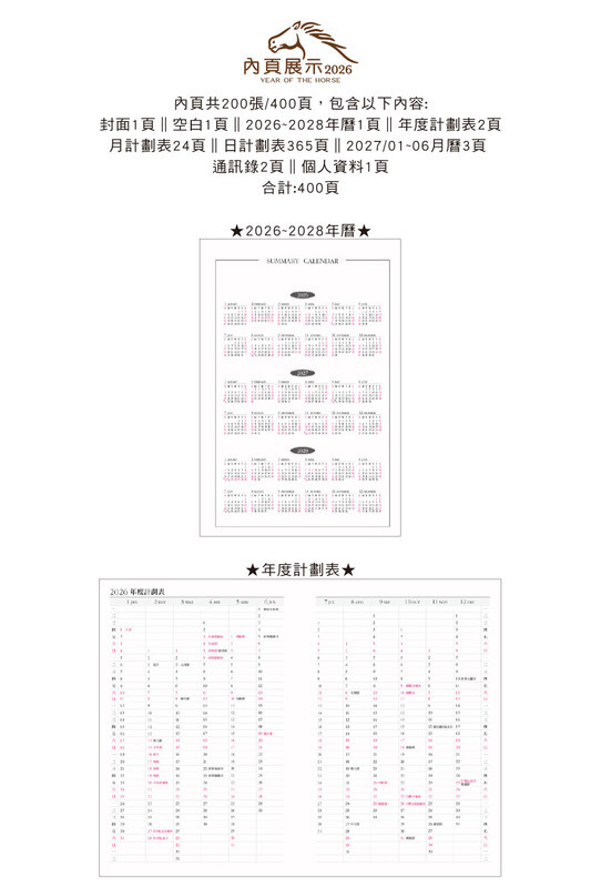 ◆內含:年曆/年計劃/月計劃/日計劃/月曆/通訊錄/個人資料