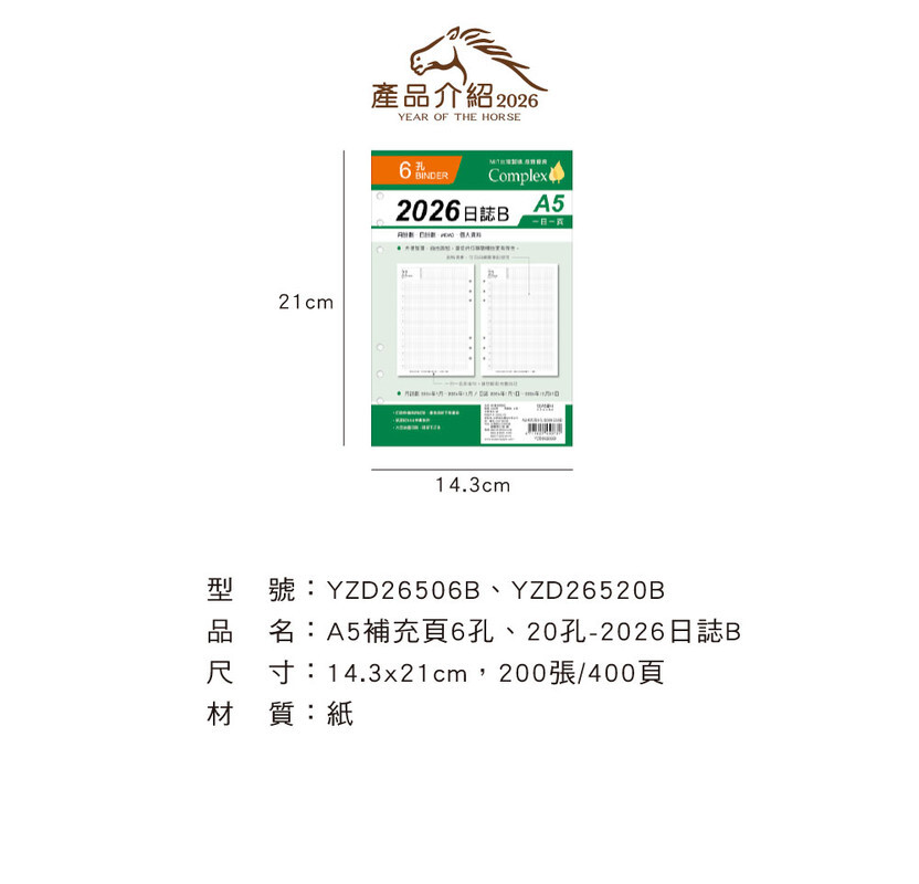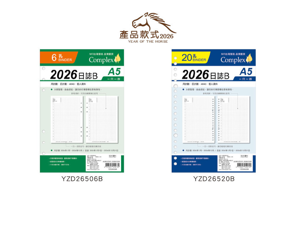 ◆四季紙品 2026日誌B A5補充頁 【YZD26506B YZD26520B】