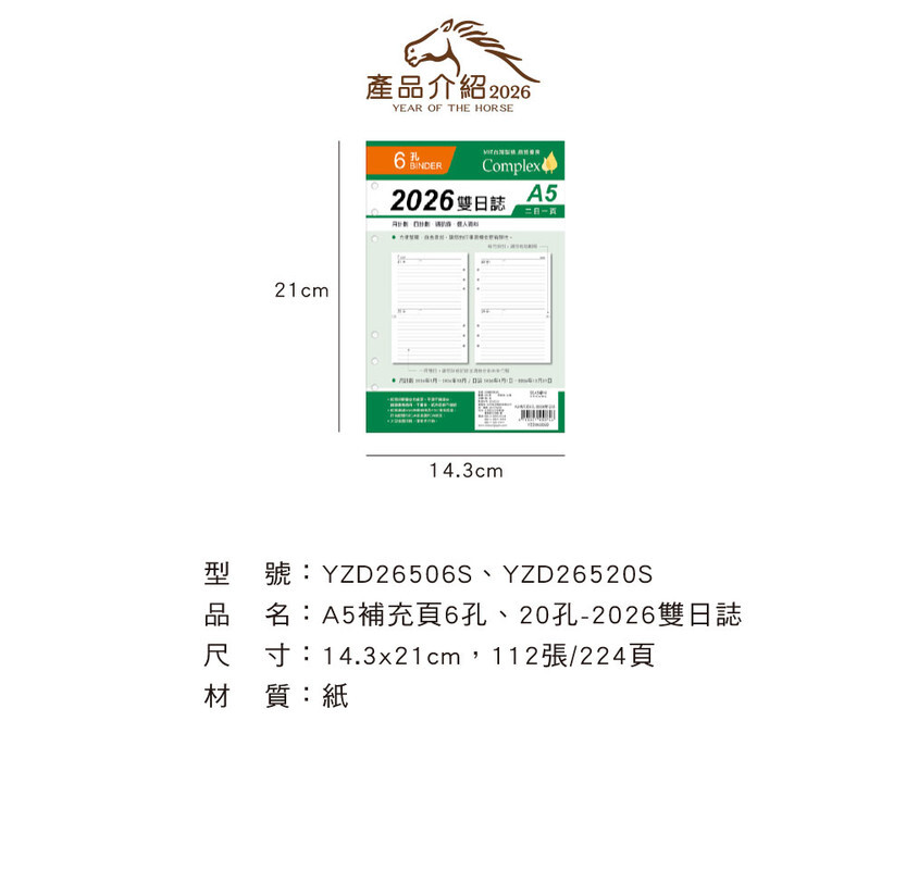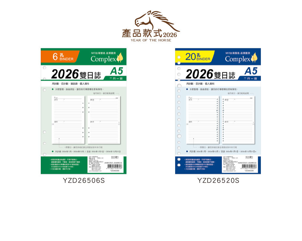 ◆四季紙品 2026雙日誌 A5補充頁 【YZD26506S YZD26520S】