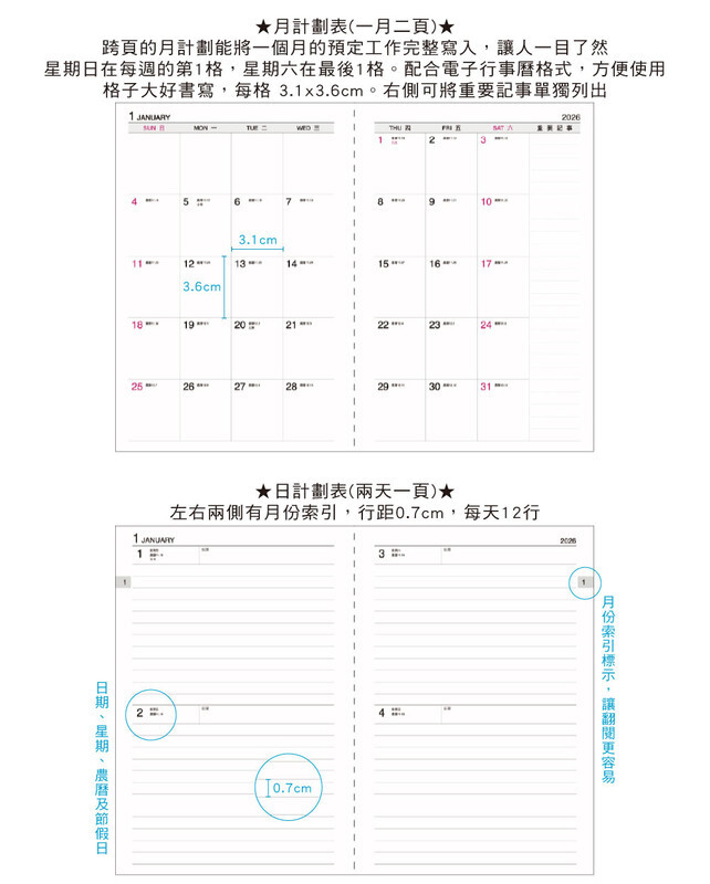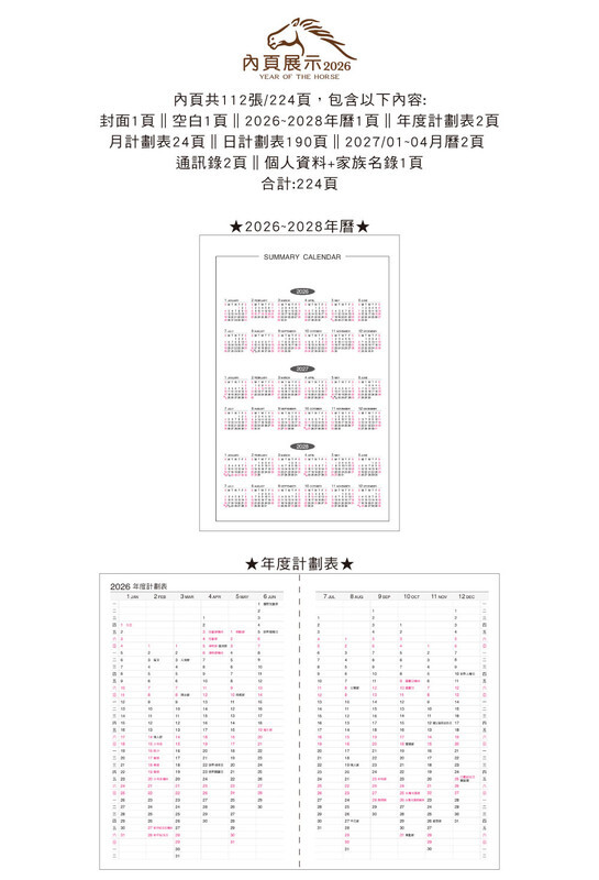 ◆內含:年曆/年計劃/月計劃/日計劃/月曆/個人資料