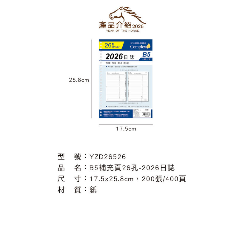 ◆四季紙品 B5補充頁26孔 【YZD26526】