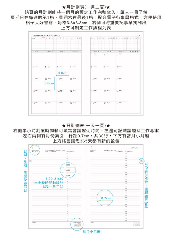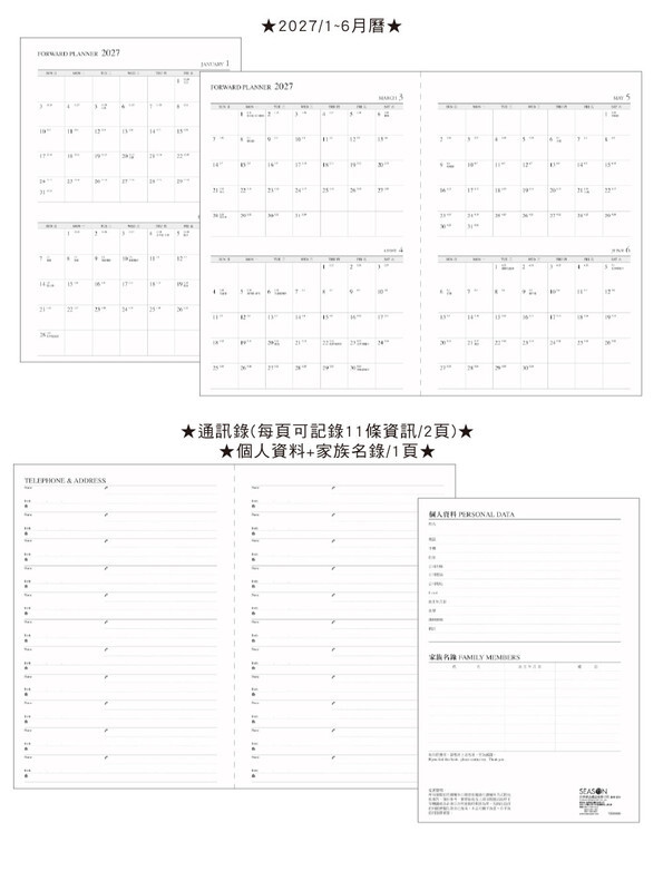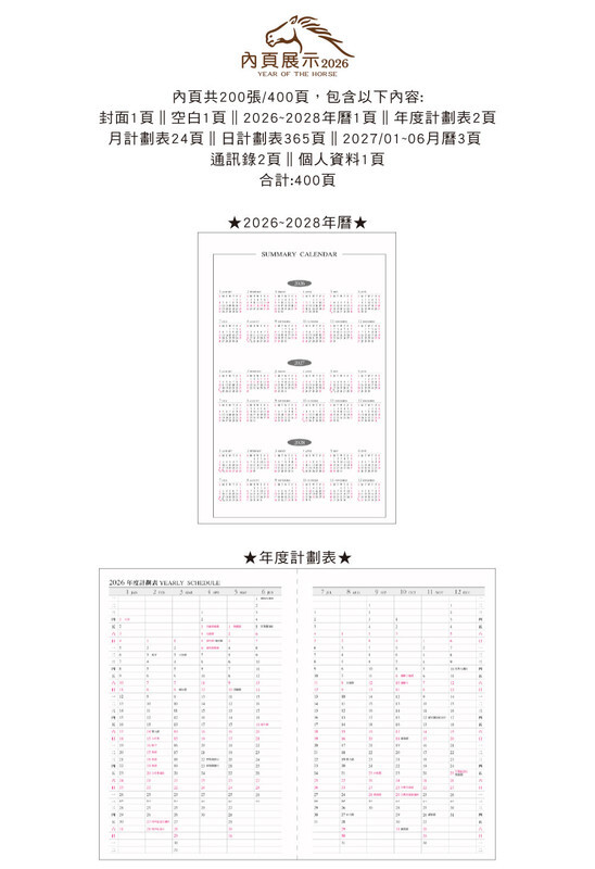 ◆內含:年曆/年計劃/月計劃/日計劃/月曆/通訊錄/個人資料