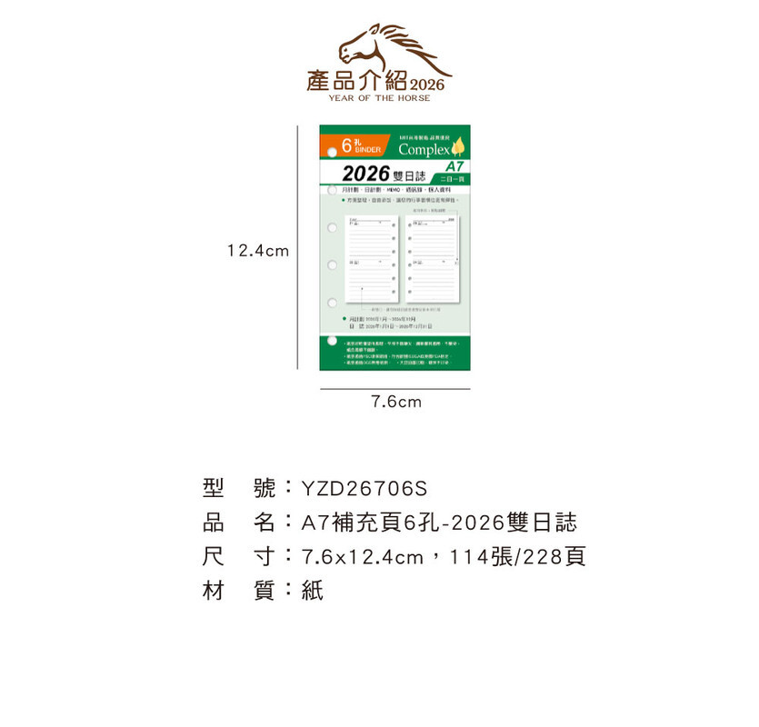 ◆四季紙品 2026雙日誌 A7補充頁 【YZD26706S】