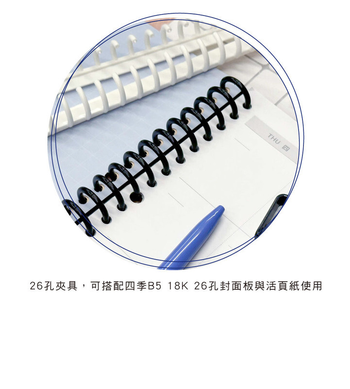 ◆可搭配四季B5 18K26孔封面板與活頁紙。