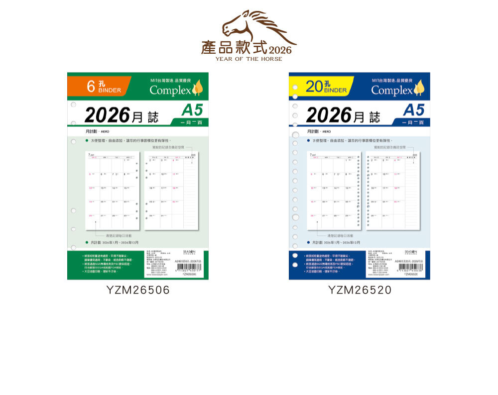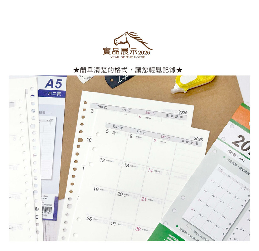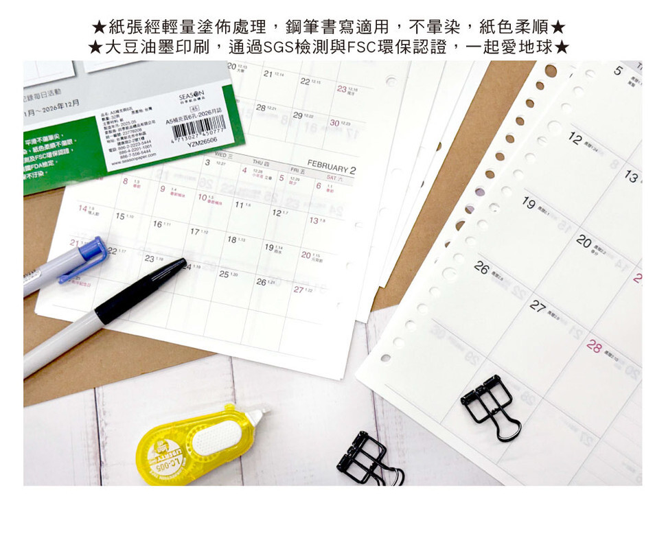 ◆四季紙品 2026月誌 A5補充頁 【YZM26506 YZM26520】