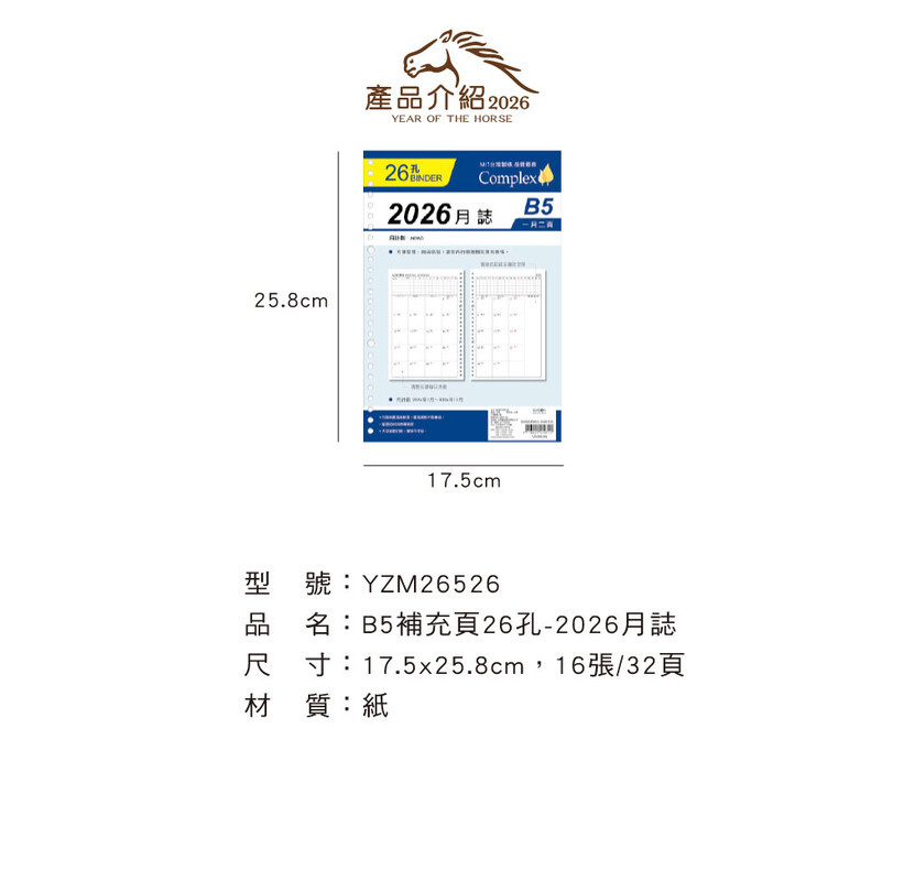 ◆四季紙品 B5補充頁26孔 【YZM26526】