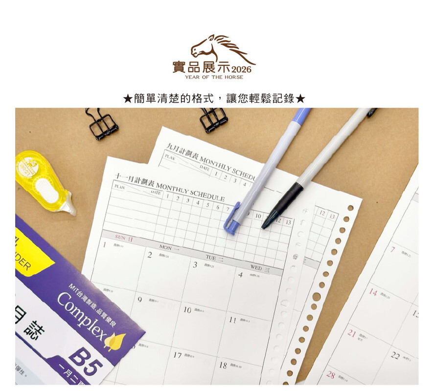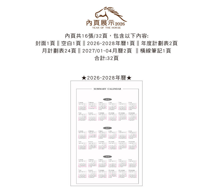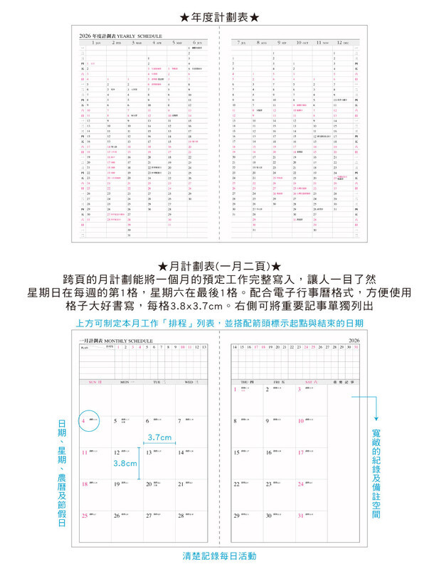 ◆內含:年曆/年計劃/月計劃/月曆/橫線筆記