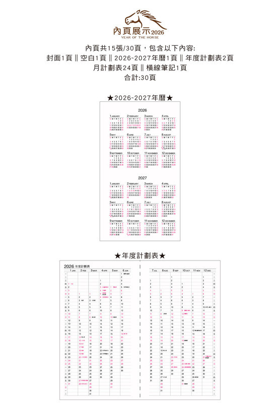 ◆內含:年曆/年計劃/月計劃。