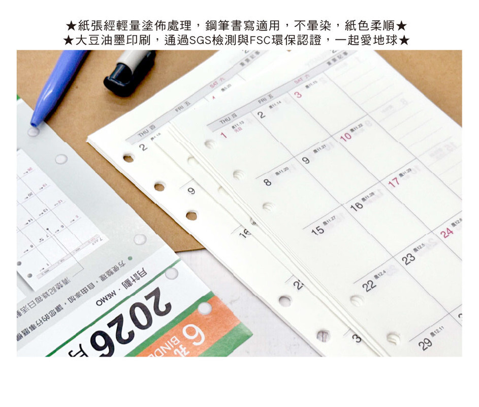 ◆四季紙品 2026月誌 A6補充頁 【YZM26606】