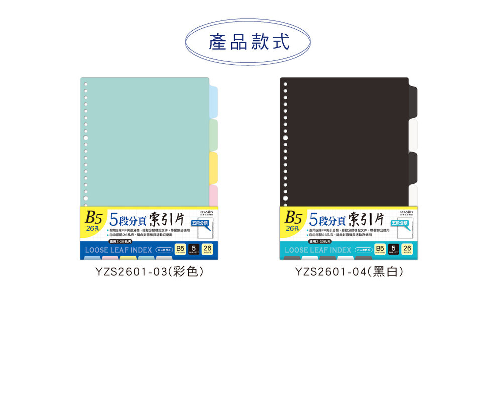 ◆四季紙品 B5PP分頁索引片26孔 【YZS2601】