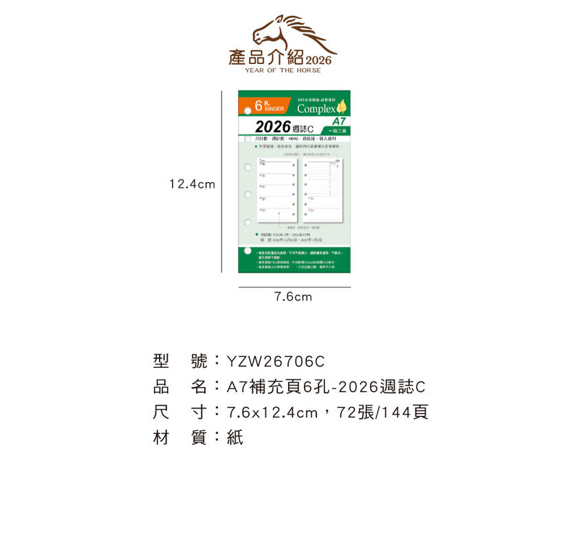 ◆四季紙品 2026週誌C A7補充頁 【YZW26706C】