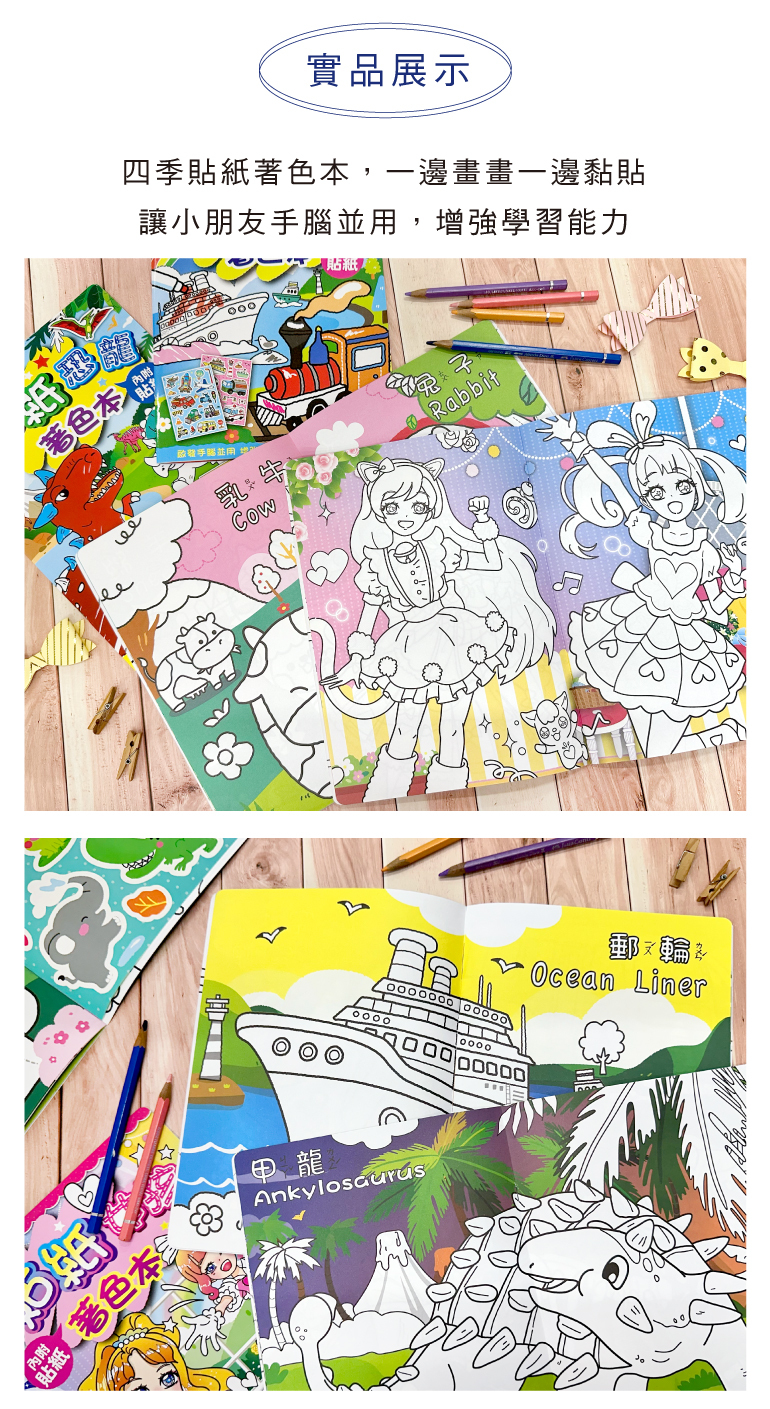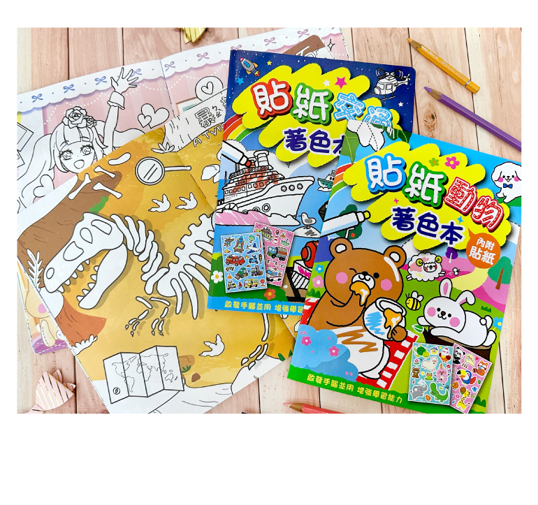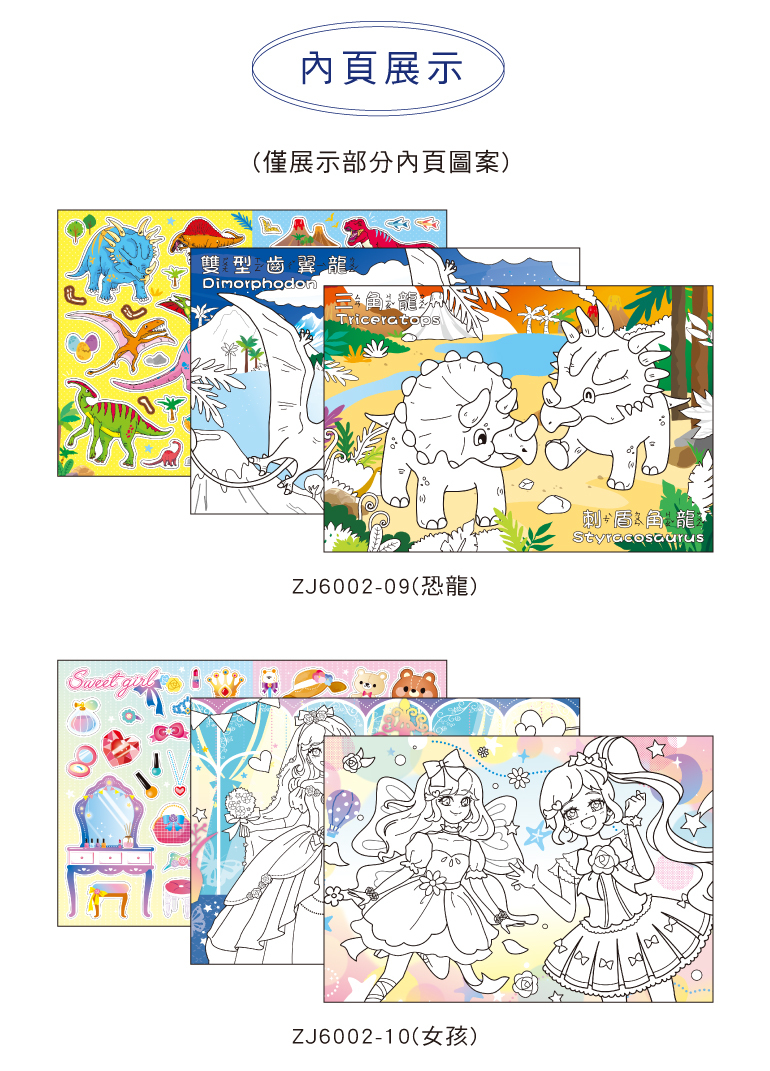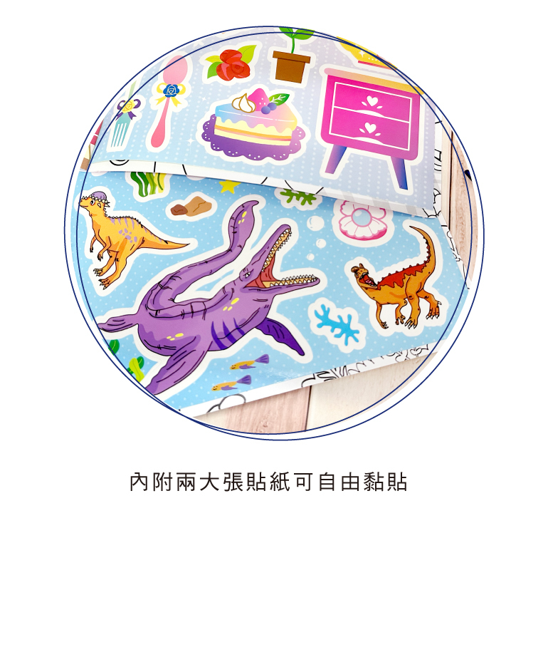 ◆彩印內頁,附兩大張貼紙,圖案豐富有趣。