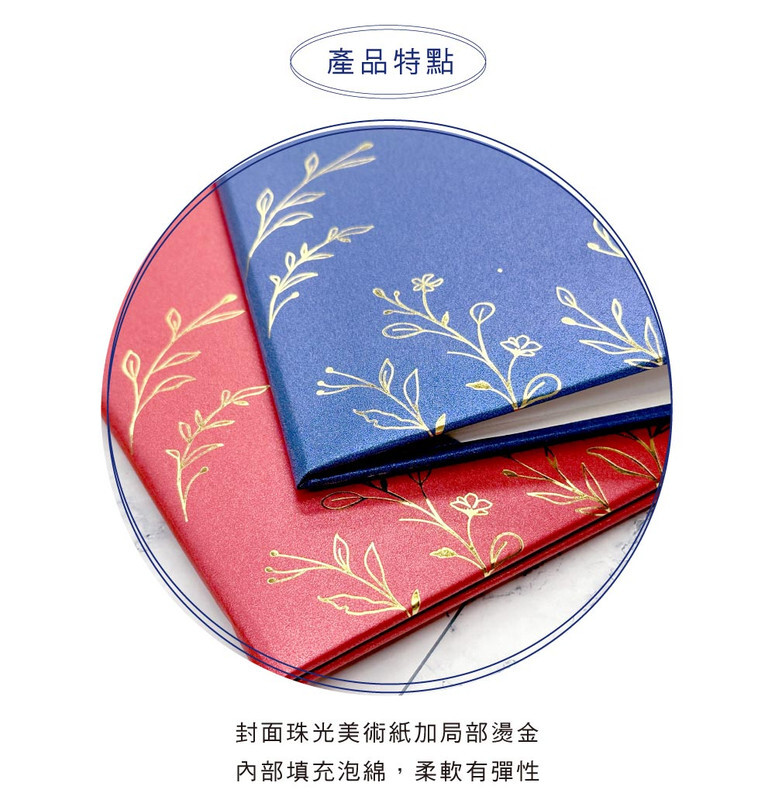 ◆封面珠光美術紙加局部燙金,內部填充泡綿,柔軟有彈性。