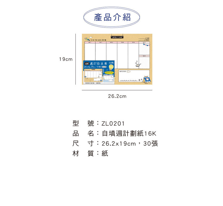 ◆四季紙品 自填週計劃紙16K 【ZL0201】