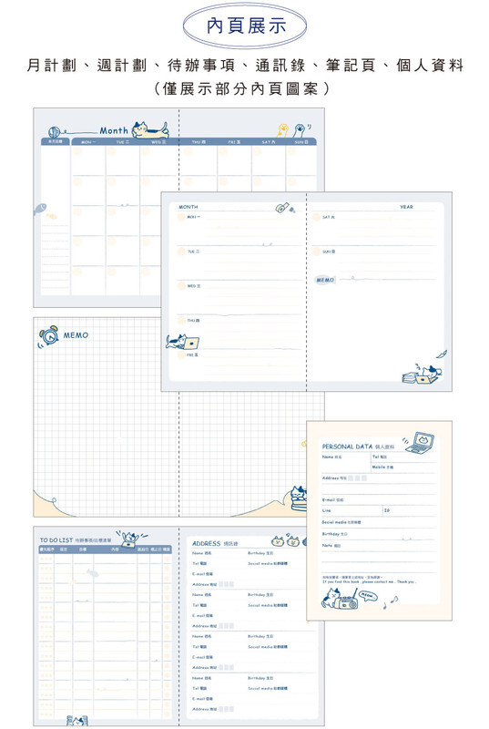 ◆內含月計劃、週計劃、待辦事項、通訊錄、筆記頁、個人資料。