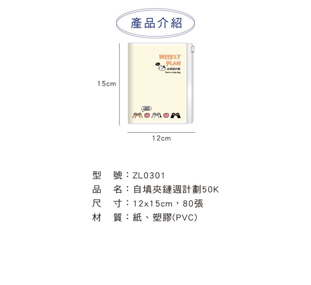 ◆四季紙品 自填夾鏈週計劃50K 【ZL0301】